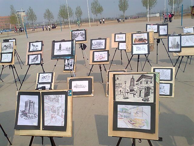 4月15日下午,环境艺术工程系室内设计专业在校园内东操场举办了一次小规模的画展,最终共评选出了八幅优秀作品。