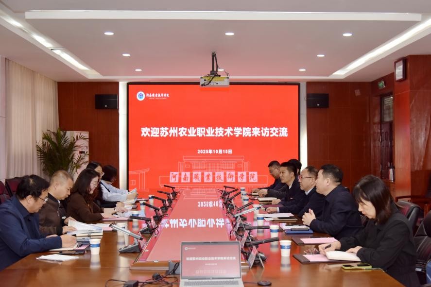 座谈会上,与会人员观看了学校宣传片《逐梦远航》。鲁冬在致辞中代表学校对苏州农业职业技术学院的到访表示热烈欢迎,并重点介绍了学校在人才培养、招生就业、国际交流合作、中外合作办学等领域的基本情况。他指出,苏州农业职业技术学院作为国家“双高计划”建设单位,办学历史悠久,在农业类职业人才培养方面特色鲜明、成果显著,被誉为中国近现代园艺与园林职业教育的发祥地。希望以此次访问交流为契机,进一步增进两校之间的了解与互信,推动在专业共建、师资交流、科研协同、国际合作等领域的务实合作,共同推动职业教育国际化迈上新台阶。