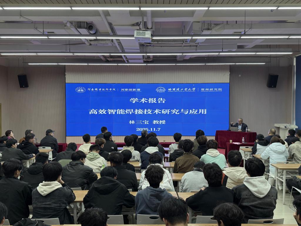 11月7日下午,学校在河职创新港519学术报告厅举行“高效智能焊接技术研究与应用”学术报告会。哈尔滨工业大学先进焊接与连接国家重点实验室教授、博士生导师林三宝应邀作学术报告。学校高层次人才以及材料工程学院专业课教师与学生代表共计110余人参加报告会。