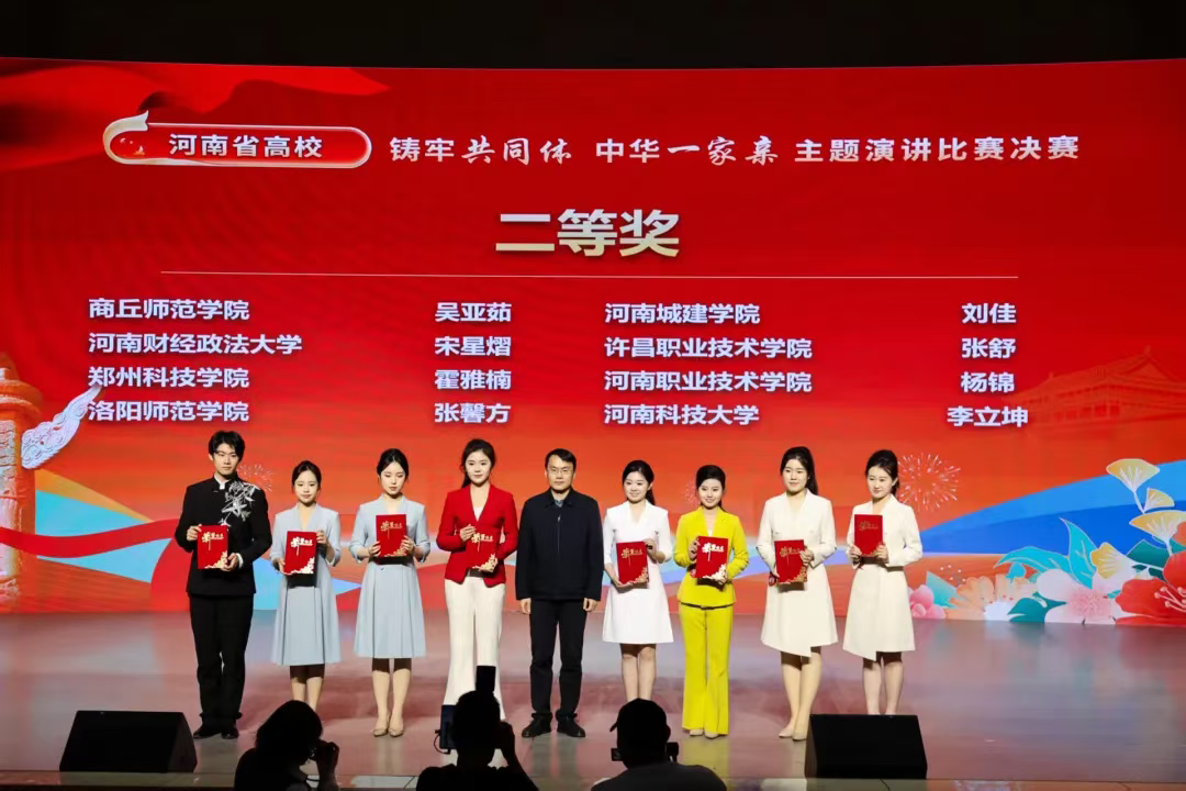11月14日,由省委教育工委、省教育厅、省民族宗教委主办的第七届河南省高校“铸牢共同体 中华一家亲”主题演讲比赛在河南师范大学举行。学校数字创意与设计学院学生杨锦以《石榴花开满园芳 万籽同心映华章》的精彩演讲脱颖而出,荣获大赛二等奖,学校获评“优秀组织奖”。