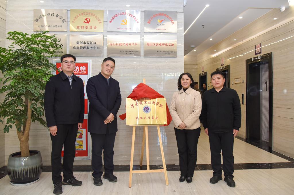 会后,夏新颜与王新卫共同为“河南职业技术学院电商培训基地”和“文化旅游学院教学实践基地”揭牌。