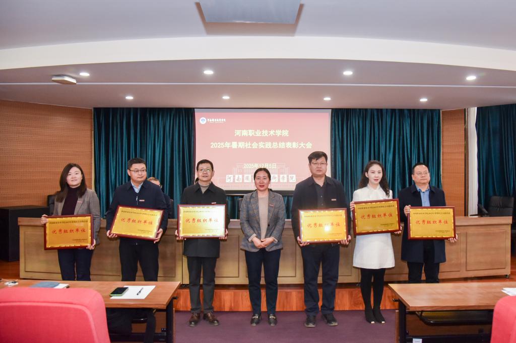 会议总结了学校2025年暑期社会实践活动整体开展情况,宣读了《中共河南职业技术学院委员会关于表彰2025年暑期社会实践活动先进集体和个人的决定》,颁发了暑期社会实践表现突出单位优秀组织奖、优秀品牌项目、优秀指导教师、优秀实践个人牌匾和证书。