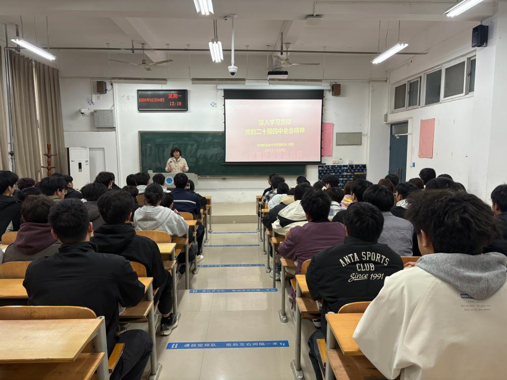 为深入学习宣传贯彻党的二十届四中全会精神,根据校党委统一部署,12月8日下午,校党委委员、副校长肖珑走进智能制造学院,为学院师生宣讲党的二十届四中全会精神。