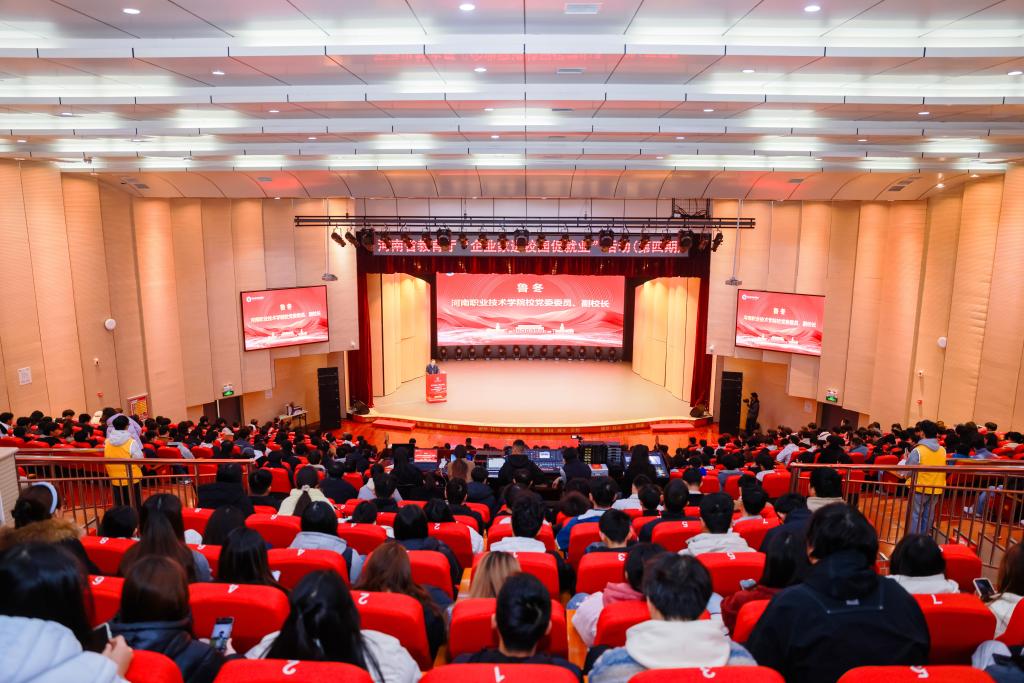12月11日上午,河南省教育厅“企业家进校园促就业”第四期活动在河南职院举行。河南省教育厅学生工作处一级调研员王新生、河南省大中专毕业生就业创业促进会会长岳修峰,校党委委员、副校长鲁冬出席活动。华北水利水电大学、郑州航空工业管理学院、郑州工程技术学院、河南开放大学和河南职院等5所院校的500余名师生参加活动。