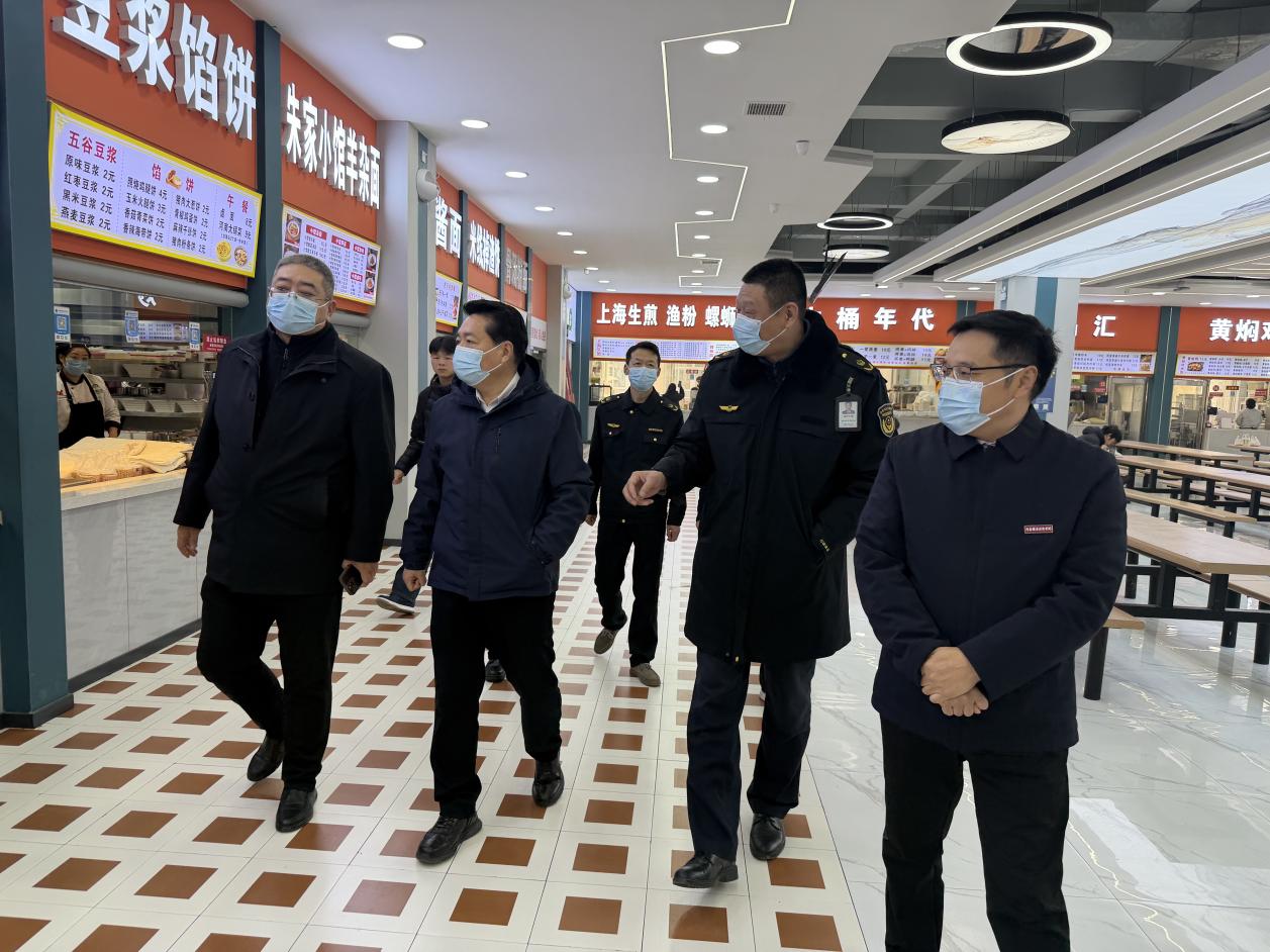 近日,郑州市委编办主任马忠杰、郑州市市场监督管理局副局长徐焱斌一行来校,就食品安全管理及餐厅运营情况开展专项督导检查。校党委委员、副校长任枫轩及后勤管理处相关负责人陪同检查。