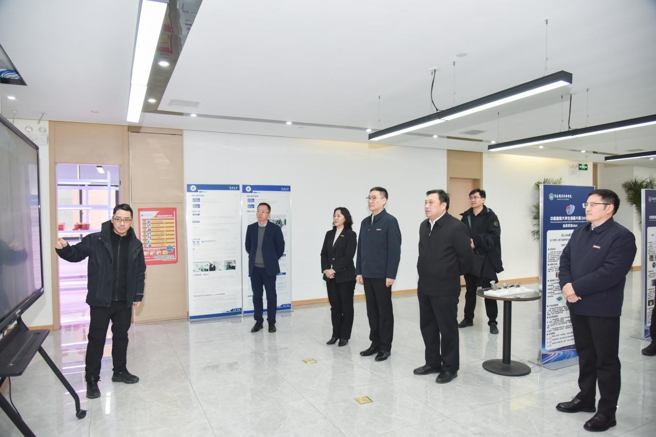 仪式结束后,胡少伟一行在校领导的陪同下实地考察了位于河职创新港二楼的“郑州大学国家大学科技园-河南职业技术学院联合概念验证中心”,共同参观了首批入驻的概念验证项目成果展示,并围绕项目技术路径、产业化前景与协同机制等议题展开了务实而深入的交流。