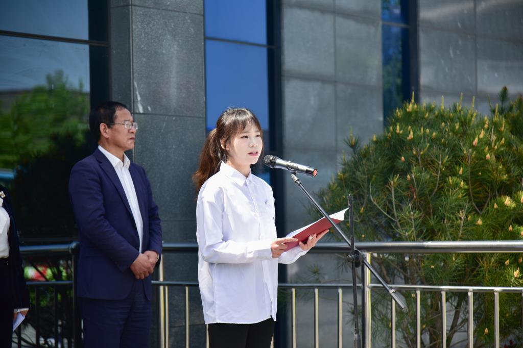 田华在致辞中代表学校党委,向确山县委、县政府及参与共建各方领导和师生代表表示衷心感谢。她指出,与确山竹沟革命纪念馆共建“大思政课”实践教学基地,是学校深入贯彻习近平总书记关于“大思政课”重要指示精神,推动“思政小课堂”融入“社会大课堂”的生动实践,也是学校深化“大思政”铸魂工程、拓展红色育人阵地的务实举措。确山竹沟是中原抗战指挥中枢、红色中原精神地标,校馆双方将以此次签约揭牌为新起点,共同把红色资源转化为育人资源、把革命旧址转化为育人阵地、把英雄事迹转化为育人教材,深挖竹沟精神时代价值与育人功能,推动协同育人走深走实,引导学生走进历史现场、感悟初心使命、传承红色基因,坚定听党话、跟党走的信念与决心,切实把学习成果转化为奋进实干的行动力,在强国建设、民族复兴新征程上彰显河职学子的青春担当。