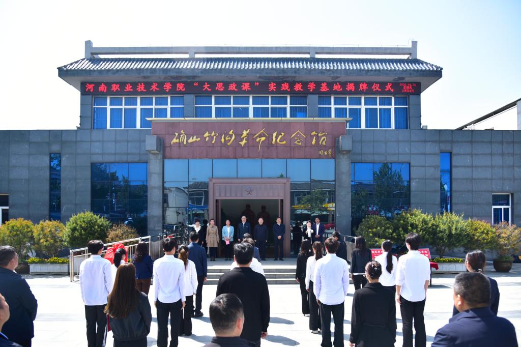 4月24日,河南职院与确山竹沟革命纪念馆共建“大思政课”实践教学基地签约揭牌仪式在竹沟举行。校党委书记厉励、确山县委书记路耕出席仪式并共同为学校“大思政课”实践教学基地揭牌。校党委副书记、工会主席田华,确山县委副书记吴玉冰等校地双方有关领导出席。仪式由确山县人民政府副县长王巧雨主持。