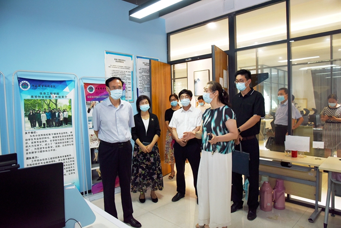 在调研过程中,张国伟实地查看学校疫情防控、开学准备工作,深入信息技术实践育人基地、智能制造实训中心、汽车实训中心、重点项目工地等实地了解情况,并认真听取有关方面的意见建议。张国伟对我校近年来取得的成绩给予充分肯定,对不等不靠积极组织灾后重建提出表扬。
