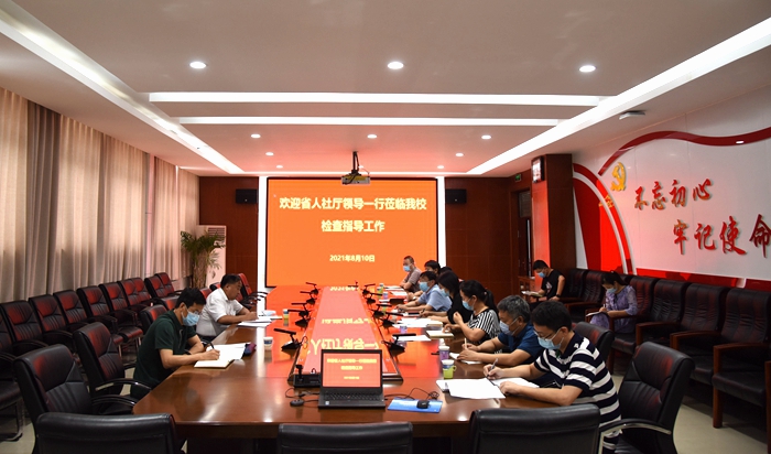 8月10日下午,省人社厅党组成员、省纪委监委驻省人社厅纪检监察组组长王清欣一行2人,到我校调研督导疫情防控暨灾后重建工作。校党委书记李桂贞、院长梅乐堂、副院长田华和工会主席夏喜利,党政办、学工部、后勤管理处和保卫处等有关部门负责人陪同调研督查。