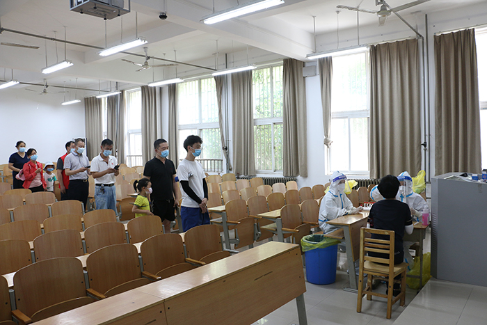 疫情就是命令,防控就是责任。按照郑州市统一部署,为进一步织密织牢校园联防联控防疫网络,保障广大师生员工的健康安全,根据郑东新区和龙子湖街道办事处疫情防控工作的统一要求,8月2日,我校在校内设置临时检测点,对校内居住的教职工及家属、暑期留校学生和校内物业人员开展全员核酸检测工作。学校党委书记李桂贞、院长梅乐堂和学校疫情防控领导小组办公室主任、副院长田华先后视察了采样现场,了解工作开展情况。