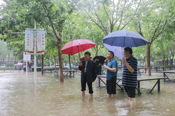 近日,郑州出现罕见持续强降水天气,全市普降大雨,暴雨,大暴雨,特大暴雨…并引发洪灾。连续的强降水天气也导致学校多处地段出现出现严重积水情况,学校党委高度重视,快速应对,第一时间组织排涝抢险、防汛抗洪、安全排查和安全教育提示等工作,确保校园汛期安全稳定。