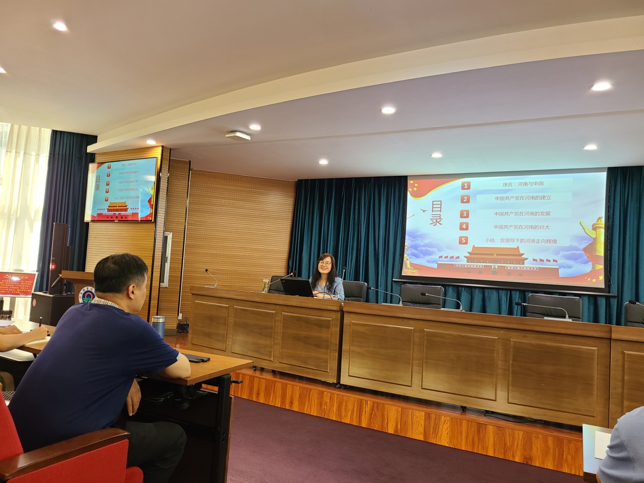 胡海涵教授为环境艺术工程学院师生作题为《“豫”见辉煌——河南百年党史说》党史宣讲。她结合河南的地域、历史、文化等特点,讲述了一百年来中国共产党带领河南人民在革命、建设、改革和复兴过程中的重大事件和成就,梳理了河南特色的红色基因和精神谱系,号召广大师生砥砺初心使命,凝聚智慧力量,接续谱写让中原更加出彩的新篇章。