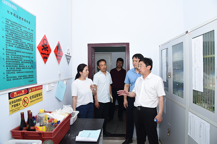梅乐堂一行重点对大学生创业孵化园、大学生心理健康教育中心、学生宿舍、食堂、锅炉房、学校在建工程设施施工现场、教学楼以及危化实训室等重点部位的安全责任落实和安全隐患排查情况进行了仔细检查,并对消防通道、消防设施、逃生路线以及逃生通道标识等方面进行了检查。