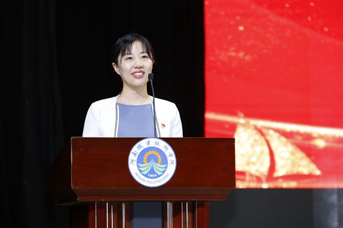 商学院辅导员刘菁雯作为教师代表发言,她用诙谐幽默的语言,给予毕业生鼓励,希望他们能够像唐僧一样拥有远大的理想;像孙悟空一样不断增强自己技术水平,解锁新的技能;像沙和尚一样埋头苦干,勇挑重担,默默奉献;像白龙马一样,天上为龙,地下为马,驰而不息,奋斗不止;像猪八戒一样,享受生活,乐观向上。