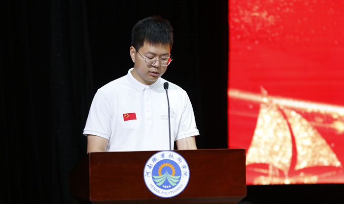 环境艺术工程学院毕业生邓兆伦同学代表2021届毕业生发言,他回顾了在校三年的大学生活,讲述了自己多次参加技能大赛的经历和获得的傲人成绩,分别对母校、老师和同学表达了感激之情,并表示将牢记母校殷切期望,秉承校训,激扬青春,奉献社会,为国家发展和民族复兴贡献全部力量。(供稿:朱晖,审稿:姚晓辉)