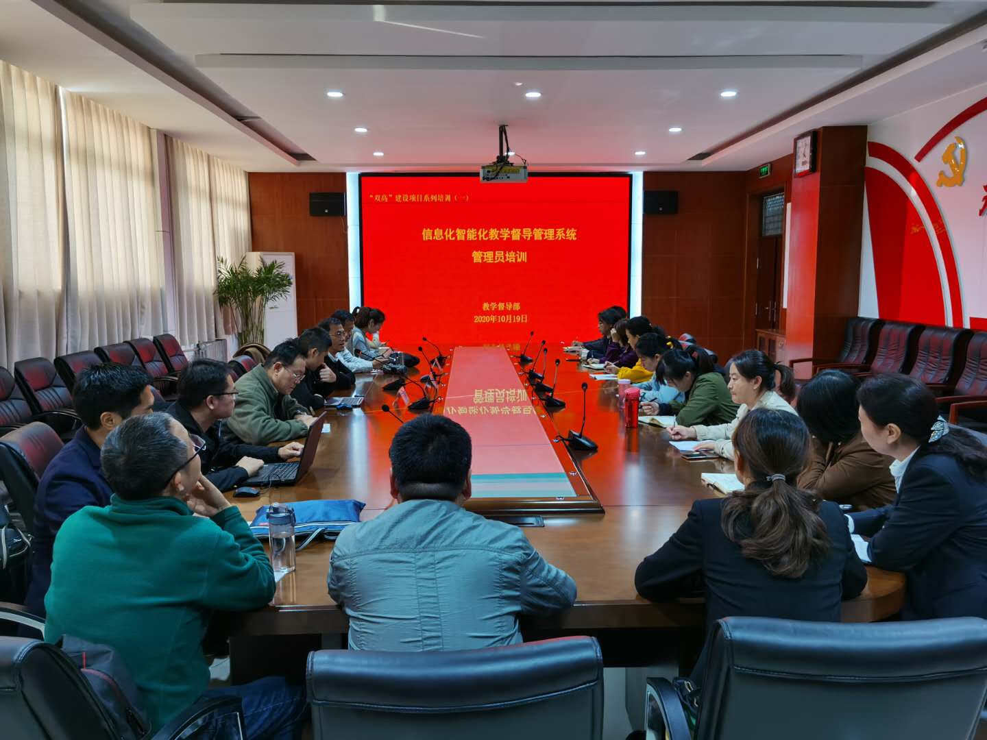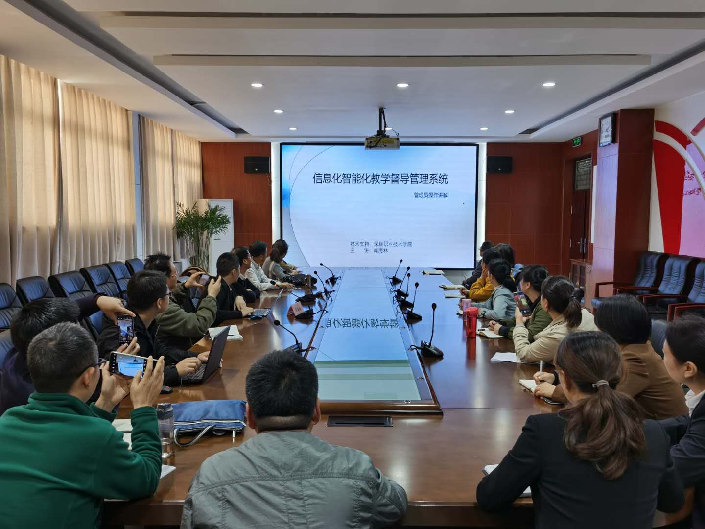 10月19日下午,我校在行政楼332会议室举行“双高”建设项目“信息化智能化教学督导管理系统建设”系列培训活动的第一期培训班,校、院两级的教学督导管理系统管理员及信息中心、教务处相关人员参加了培训。