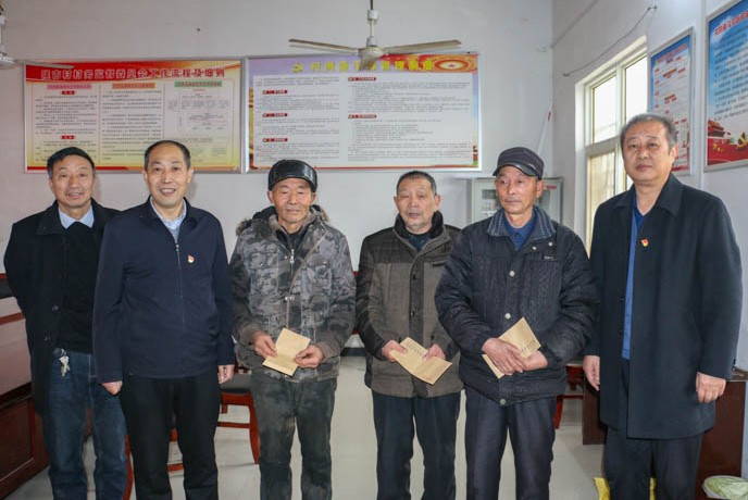 12月17日,受学校党委委托,副院长王皓与宣传部有关人员一行4人,赴省委组织部、省人力资源社会保障厅帮扶村潢川县隆古村走访慰问,为贫困户送去了慰问金和祝福,并与驻村第一书记曹永鹏和村委负责同志进行交流座谈。