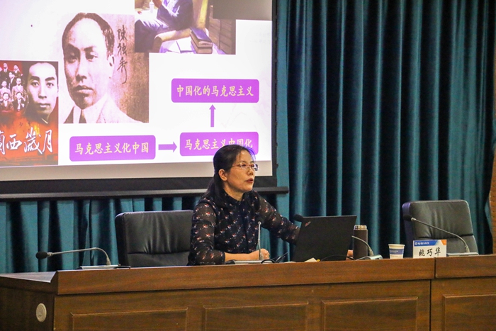 会上,姚巧华教授从习近平新时代中国特色社会主义思想的重要意义、形成背景、治国要义和践行路径四个方面做了精彩的报告。她指出,习近平新时代中国特色社会主义思想是党和人民实践经验和集体智慧的结晶,具有重要的政治意义、理论意义和实践意义;在科学的理论指导、壮阔的社会实践、崭新的时代方位、深厚的文化积淀和独特的主体背景下形成了习近平新时代中国特色社会主义思想;高举中国特色社会主义伟大旗帜,担负起实现中华民族伟大复兴的历史使命,牢记为人民谋幸福的初心,新时代坚持和发展中国特色社会主义的基本方略,夯实新时代党的建设伟大工程根基等一系列的治国要义均蕴含在习近平新时代中国特色社会主义思想中;要坚持做到知行合一、真抓实干,做实干家,不讲空话套话,多做实事真事,践行习近平新时代中国特色社会主义思想。