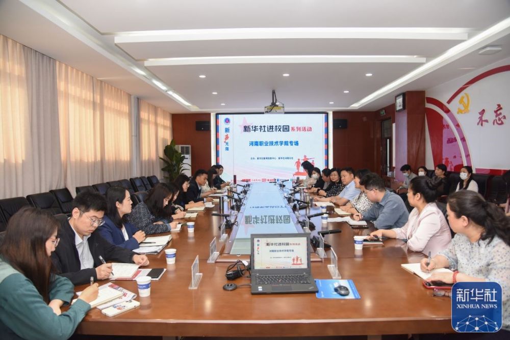 新华社客户端郑州5月31日电 5月30日,“新声无限——2023年新华社进校园”活动在河南职业技术学院举办。河南职业技术学院党委书记李桂贞,新华社河南分社分党组成员、副社长杨明杰出席活动。