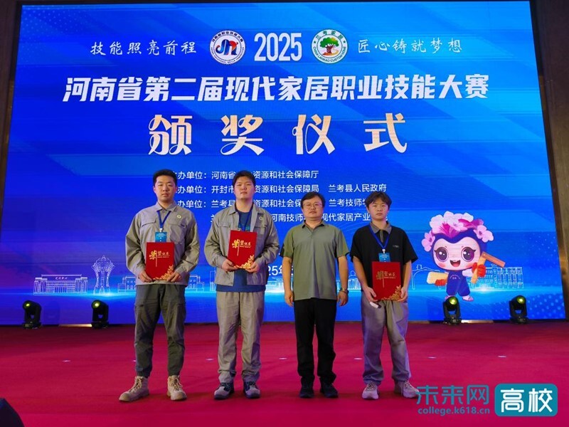 5月7日至11日,河南省第二届现代家居职业技能大赛在开封市兰考县举行。河南职业技术学院数字创意与设计学院学生李壮、冯杨子汉分别荣获家具设计师赛项一等奖,焦鹏凯荣获手工木工赛项三等奖。