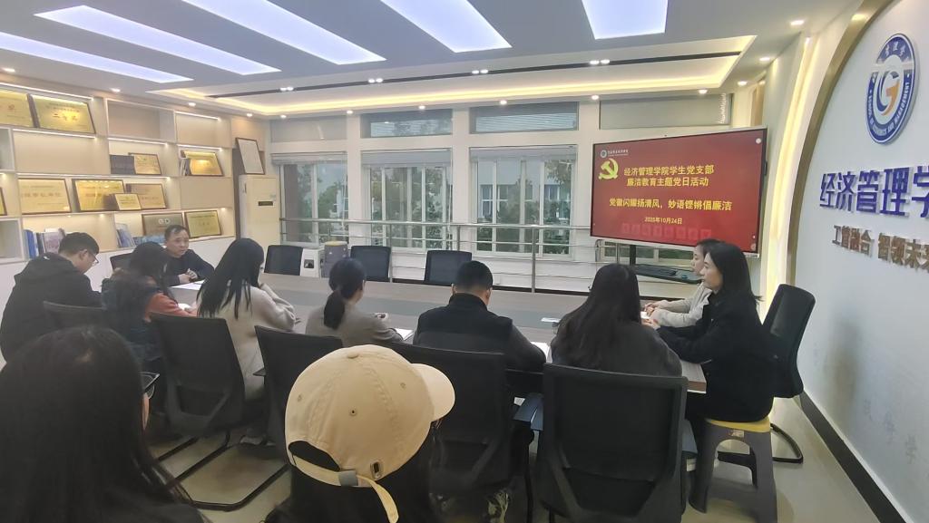 10月24日下午,学校经济管理学院学生党支部在笃行楼610教室开展廉洁教育主题党日活动。全体教师党员和部分学生入党积极分子参加活动。
