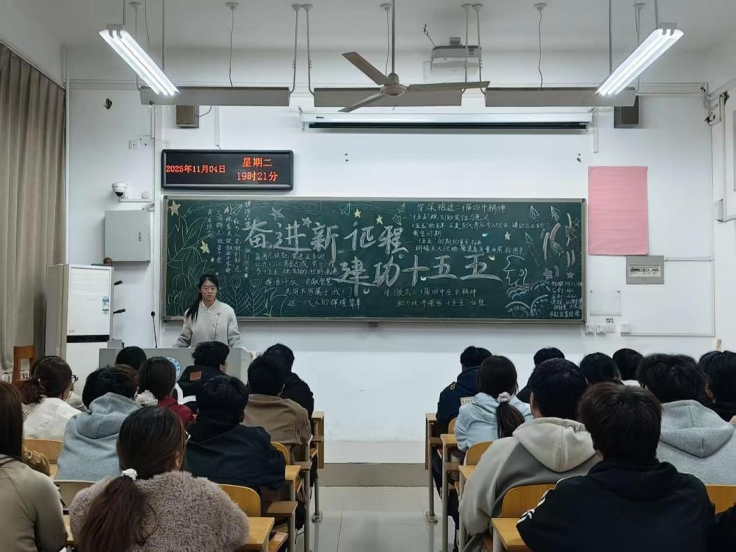 在主题团课中,各团支部围绕党的二十届四中全会的召开背景及其核心成果展开深入学习,重点解读了全会审议通过的关于“十五五”规划的建议。同学们深刻认识到,“十五五”时期在基本实现社会主义现代化进程中具有承前启后的重要地位。“以推动高质量发展为主题、加快高水平科技自立自强”等与经济强国建设相关的关键部署,进一步激发了电子信息与物联网领域学子的专业认同感和时代责任感。