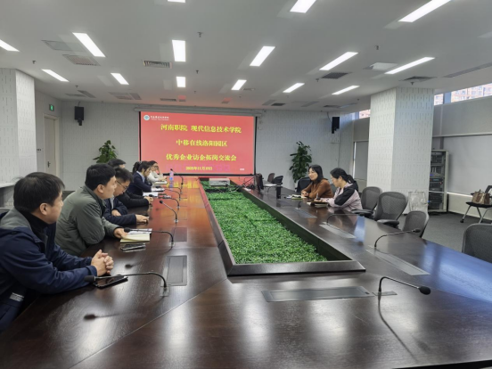 11月18日下午,学校现代信息技术学院党总支书记、院长李纪云率教师代表一行三人,赴洛阳市大数据产业园中移在线服务有限公司开展访企拓岗活动,与中移在线及其旗下中石化、大地财险、国航客服中心、博岳通信、新晨科技等10余家优质合作企业代表齐聚一堂,共商校企合作与人才培养新路径。