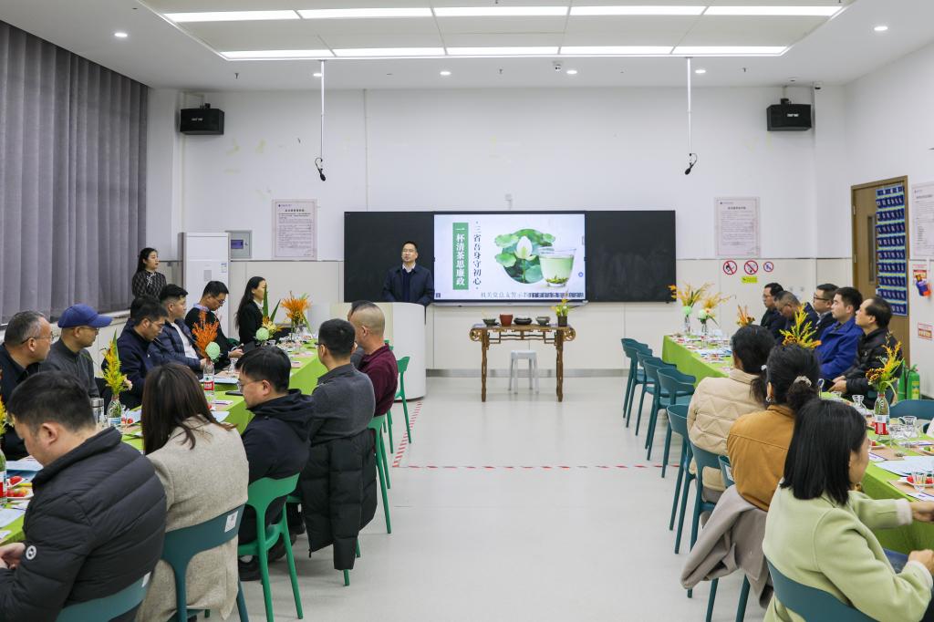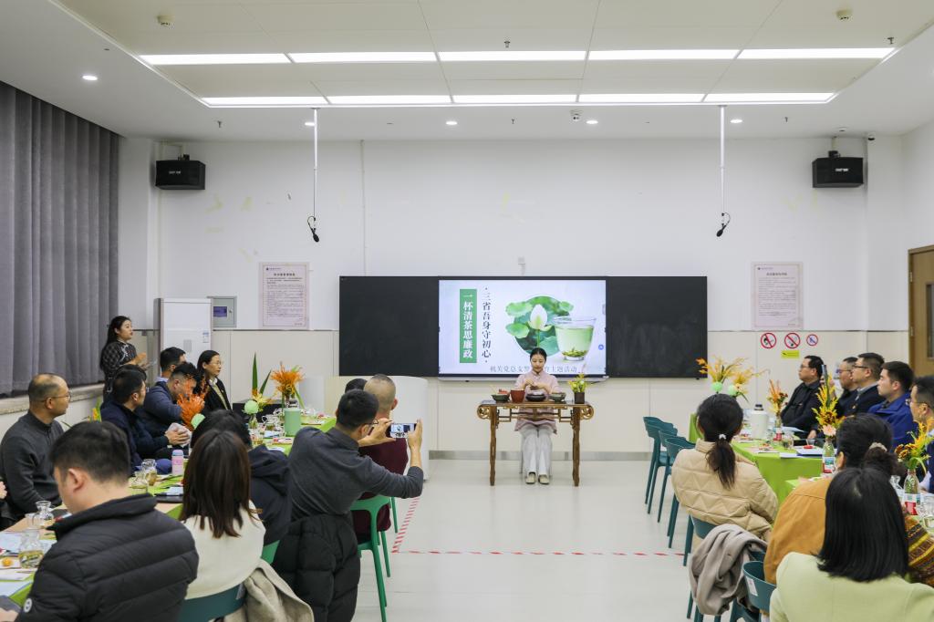 11月26日下午,学校机关党总支联合食品工程学院在合鼎楼902会议室开展“一杯清茶思廉政·三省吾身守初心”警示教育活动。机关各支部50余名党员代表参加活动,在传统茶道文化中接受廉洁文化熏陶,筑牢拒腐防变思想防线。