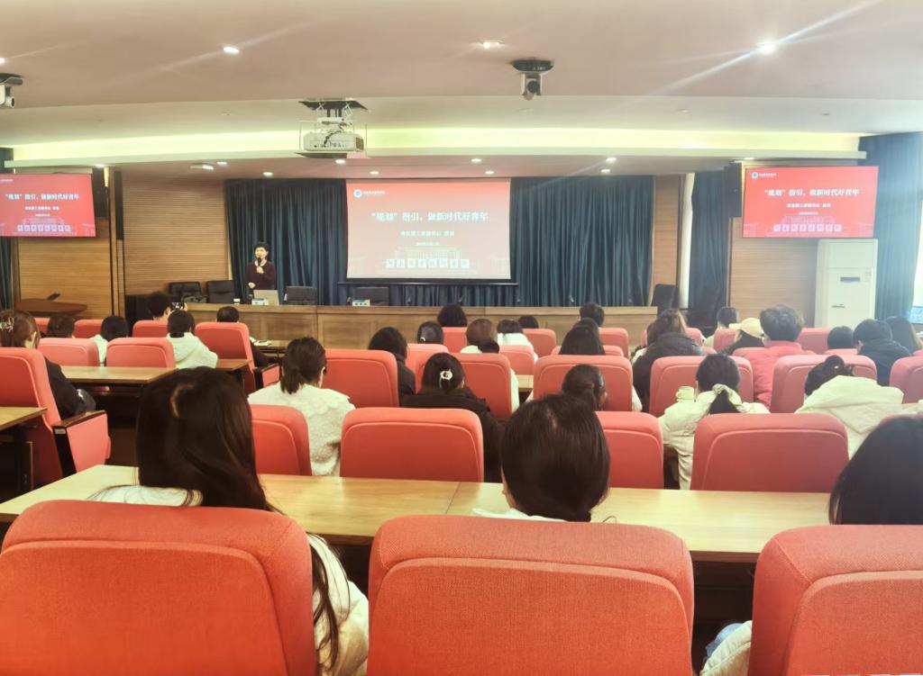 张苗以“青年与时代同频,青春与家国共振”为主线,从党的二十届四中全会对青年工作的战略部署破题,结合马克思主义青年观的哲学逻辑、五四运动以来青年群体的历史实践,阐明“青年是党的事业薪火相传的核心力量”这一深刻命题。她系统解读了全会关于“推进中国式现代化”的目标要求,结合中共一大代表平均28岁的青春注脚、青年突击队攻坚克难的“青年洞”精神等实例,并以白居易知行合一践行善念、苏东坡勤抄汉书积淀才气的典故为引,结合袁隆平扎根田间、吴明珠深耕种业的奉献故事,鼓励学生一要“有理想,知行合一”,以坚定信念涵养一身正气;二要“敢担当,大胆创新”,以进取姿态彰显一身朝气;三要“能吃苦,用心用力”,以过硬本领锤炼一身才气;四要“肯奋斗,耐得寂寞”,以坚韧品格沉淀一身静气。引导青年学生争做有理想、敢担当、能吃苦、肯奋斗的新时代好青年。