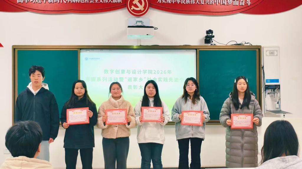 近日,学校数字创意与设计学院举办2026年寒假系列活动暨“返家乡”社会实践先进个人表彰大会。60余名参与社会实践的学生代表参加会议,共同回顾实践历程,表彰先进典型。