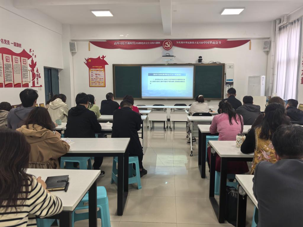 会议聚焦师德规范建设,组织全体教职工集中观看《新时代高校教师职业行为十项准则》专题视频,并结合视频内容深入学习典型案例警示片。通过“理论解读+案例剖析”的形式,全体教师逐条领会准则对职业行为的具体规范,深刻感悟言行雅正、廉洁自律、潜心育人的重要意义。参会人员一致表示,将以准则为行动指南,自觉规范从教行为,坚守师德底线,以良好的师风涵养优良学风。
