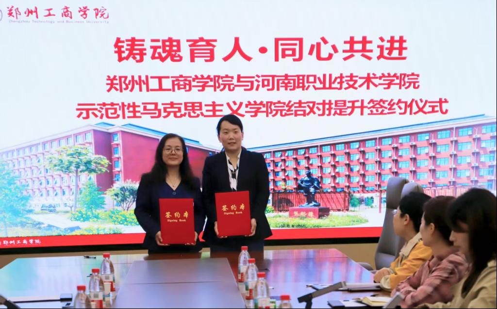 参观环节,学院师生一行走进郑州工商学院马克思主义学院文化墙及办公区域。文化墙上,一幅幅生动的图片、一段段精练的文字,展现了我国思政课建设历程及该校在课程建设、理论研究及学生实践活动中的特色亮点。结对提升签约仪式上,双方就教师互派互访、组织集体备课、加强学术交流、开展教学研究、推进资源共享等方面达成共识,为后续深度协作奠定基础。