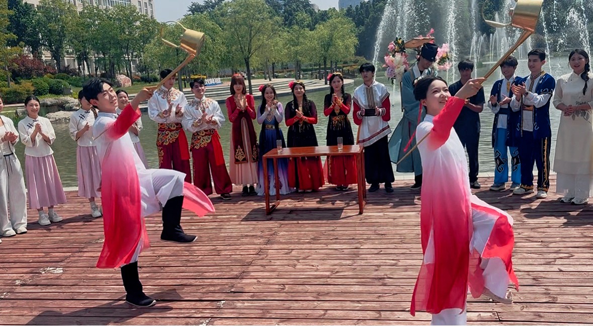 4月24日上午,学校党委学生工作部在明湖广场组织开展铸牢中华民族共同体意识教育主题文化交流活动,各民族学生代表参与活动。
